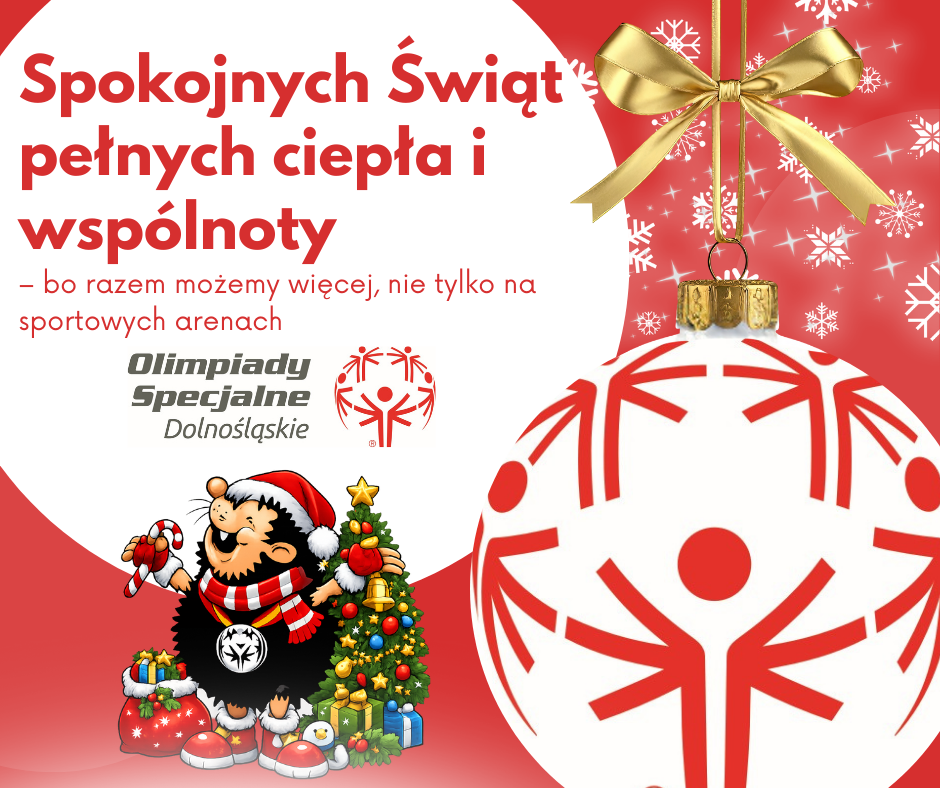 Z okazji Świąt Bożego Narodzenia życzymy wszystkim Zawodnikom, Trenerom, Rodzinom, Wolontariuszom, Partnerom i Przyjaciołom Olimpiad Specjalnych Dolnośląskie wielu chwil radości, spokoju i prawdziwego ciepła płynącego ze wspólnoty. Niech ten wyjątkowy czas będzie jak dobrze rozegrany mecz — pełen wzajemnego wsparcia, fair play, wiary w siebie i radości z bycia razem. [...]